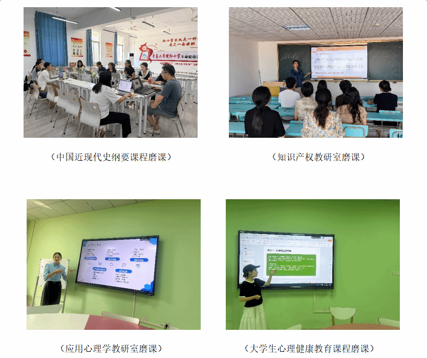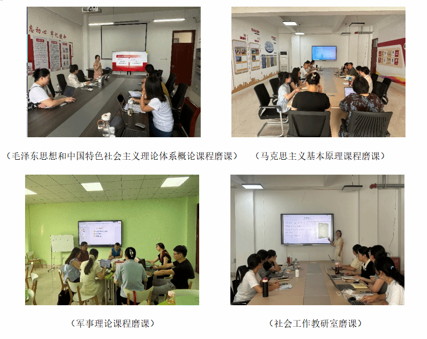 此次磨课活动严格遵循学校“全员参与、注重过程、实事求是”原则,结合思政课程特点精心部署。学院以社会工作、知识产权、应用心理、新思想毛概形策、思法马原、纲要四史、军事理论等7个教研室为单位,围绕“教学目标、教学内容、教学环节、学情把握、教学方法、教学课件”等要素制定详细计划。各教研室明确“按章节分工、逐内容研磨”机制,确保每章课程内容都经过教师集体研讨打磨。