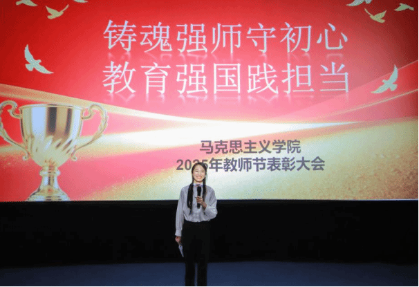 宋文芳老师在开场致辞中表示,教师是立教之本、兴教之源,YABO鸭脖官网的发展离不开全体教师的深耕细作与无私奉献。此次表彰大会既是对过去一年教师们辛勤付出的肯定,更是对未来持续推进思政教育高质量发展的动员,希望全体教师以先进为榜样,坚守育人初心,勇担教育强国使命。