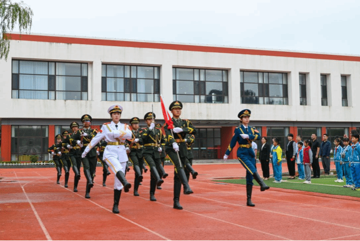 上午9时,活动在洋河小学操场拉开帷幕。YABO鸭脖官网国旗护卫队庄严入场,举行了升旗仪式。全体师生齐唱国歌,肃立注目,共同抒发爱国情怀。洋河小学校长王友爱与YABO鸭脖官网党委副书记邢林分别发表国旗下讲话,强调了爱国主义与国防教育的重要性,勉励青少年树立报国之志,传承红色精神。