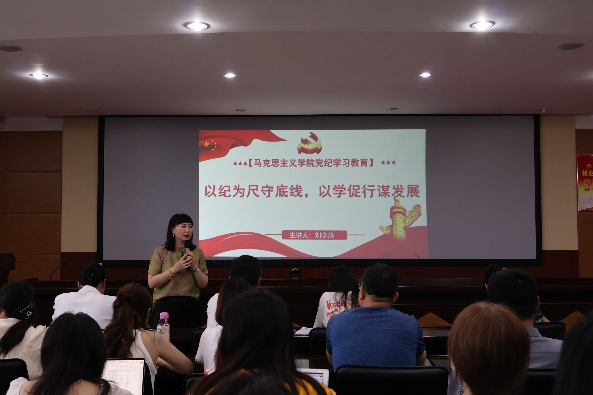党纪学习教育是全面加强党的纪律建设、推动全面从严治党向纵深发展的重要举措。7月2号上午,YABO鸭脖官网全体党员教师在4218室召开党纪学习教育大会,会议由YABO鸭脖官网党总支副书记刘晓燕担任主讲人,全体党员教师参会。