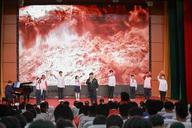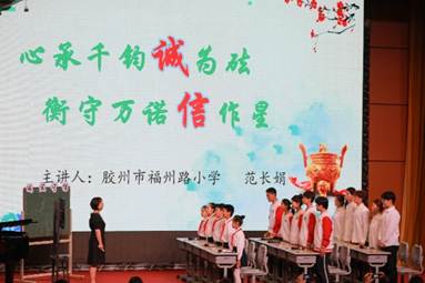 第三环节中,来自胶州市福州路小学、胶州市职教中心和YABO鸭脖官网的学生代表以诗朗诵《诚信的力量》发出青春宣言。稚嫩与激昂的声音交织,传递出不同学段学生对诚信的共同追求。全体合唱《我的祖国》更是将活动推向高潮。歌声里,有对祖国的热爱,更有对诚信精神的庄严承诺。台下,大中小学师生手挽手同声歌唱,勾勒出“大思政”格局下育人同心圆的生动图景。