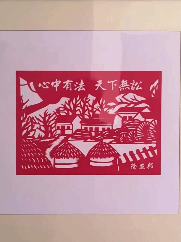 首先,刘蕾老师带领学生们参观了胶州市公共法律服务中心由社会法律人士赠送的普法剪纸,各式各样的剪纸作品将胶州市特色剪纸文化与普法相结合,促进了传统文化与法律宣传工作的融合与发展。