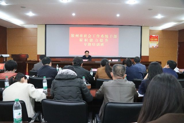 为深入贯彻习近平总书记关于社会工作重要指示精神,进一步加强全市社会工作系统干部队伍建设,推动社会工作高质量发展,市委社会工作部于11 月22日在胶州社会工作学院成功举办全市社会工作系统干部履职能力提升专题培训班。培训班的召开为全市社会工作注入了新的活力与智慧,有力地促进了社会工作理念的更新、方法的创新以及服务效能的显著提升,为全市社会工作事业迈向新台阶蓄势赋能。
