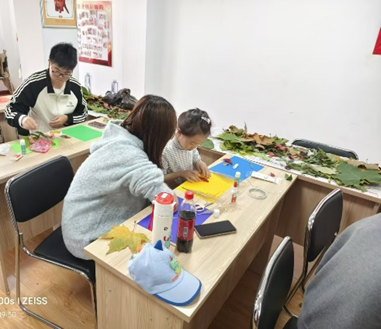 活动现场,五彩斑斓的树叶仿佛是大自然的调色盘,而十二生肖的可爱形象则成为了小朋友们手中的创意源泉。在社工专业学生们的引导之下,小朋友们兴奋地穿梭于树叶之间,挑选着自己心仪的“画笔”。他们利用这些落叶,通过拼接、粘贴等方法,再根据自己的想象和创意,用彩笔进行点缀与修饰,创作出一幅幅生动的生肖图案。从灵动的兔子到威武的龙,从憨态可掬的小猪到忠诚老实的狗,每一个生肖都被赋予了新的生命,仿佛在诉说着一个个关于生肖的奇妙故事,充分展现了孩子们丰富的想象力和创造力。