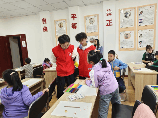 在绘画的过程中,同学们始终陪伴在孩子们身边,给予他们指导和鼓励。他们耐心地倾听孩子们的想法和感受,与他们分享自己的成长故事和感恩之心。在同学们的引导下,孩子们不仅学会了如何用画笔表达自己的情感,还更加深刻地理解了感恩的意义。