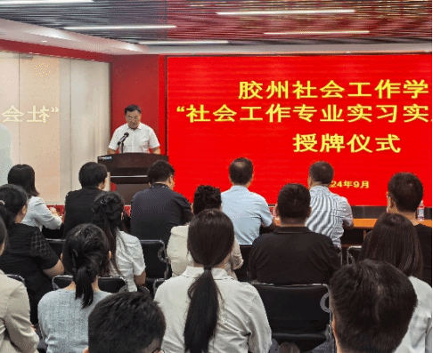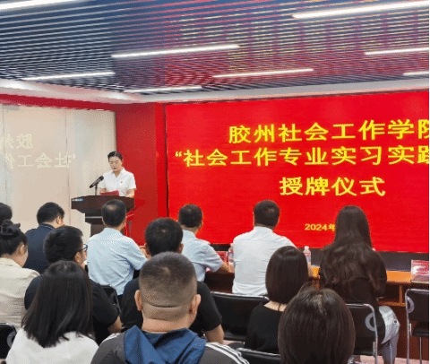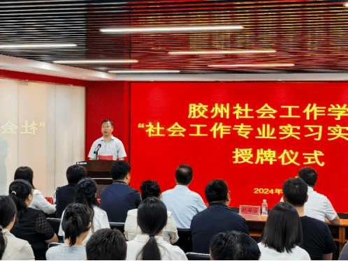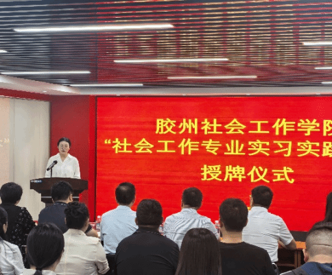 仪式由市委社会工作部副部长杜从文主持,并宣读了被选为实习实践基地的11个社区名单,这些社区分别来自阜安、中云与三里河街道,它们在社会治理、社区服务等方面均有着丰富的经验和突出的成绩。杜部长表示,这些实践基地的设立,将为胶州社会工作学院的学生提供一个宝贵的实习实践平台,使他们能够深入了解社区工作的实际情况,掌握社会工作的方法和技巧,提升解决实际问题的能力。同时,这也将促进学院与社区之间的交流与合作,共同推动社会工作领域的创新发展。